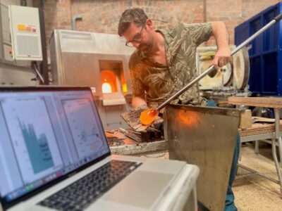 Based at Stourbridge Glass Museum in the West Midlands, celebrated glassblower Allister has made significant changes to his practice, focusing on reducing energy consumption to lower the workshop’s carbon footprint, while sharing his insights with glassmakers globally. Rachael, a jeweller and metalworker, celebrates materials and making through her practice. Based in Sheffield, her work not only challenges notions of value and consumption but also inspires future generations of makers to explore sustainable materials and processes.